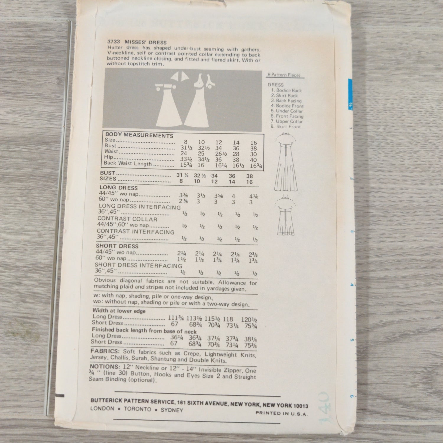 Butterick 3733 Size 10 Bust 32.5