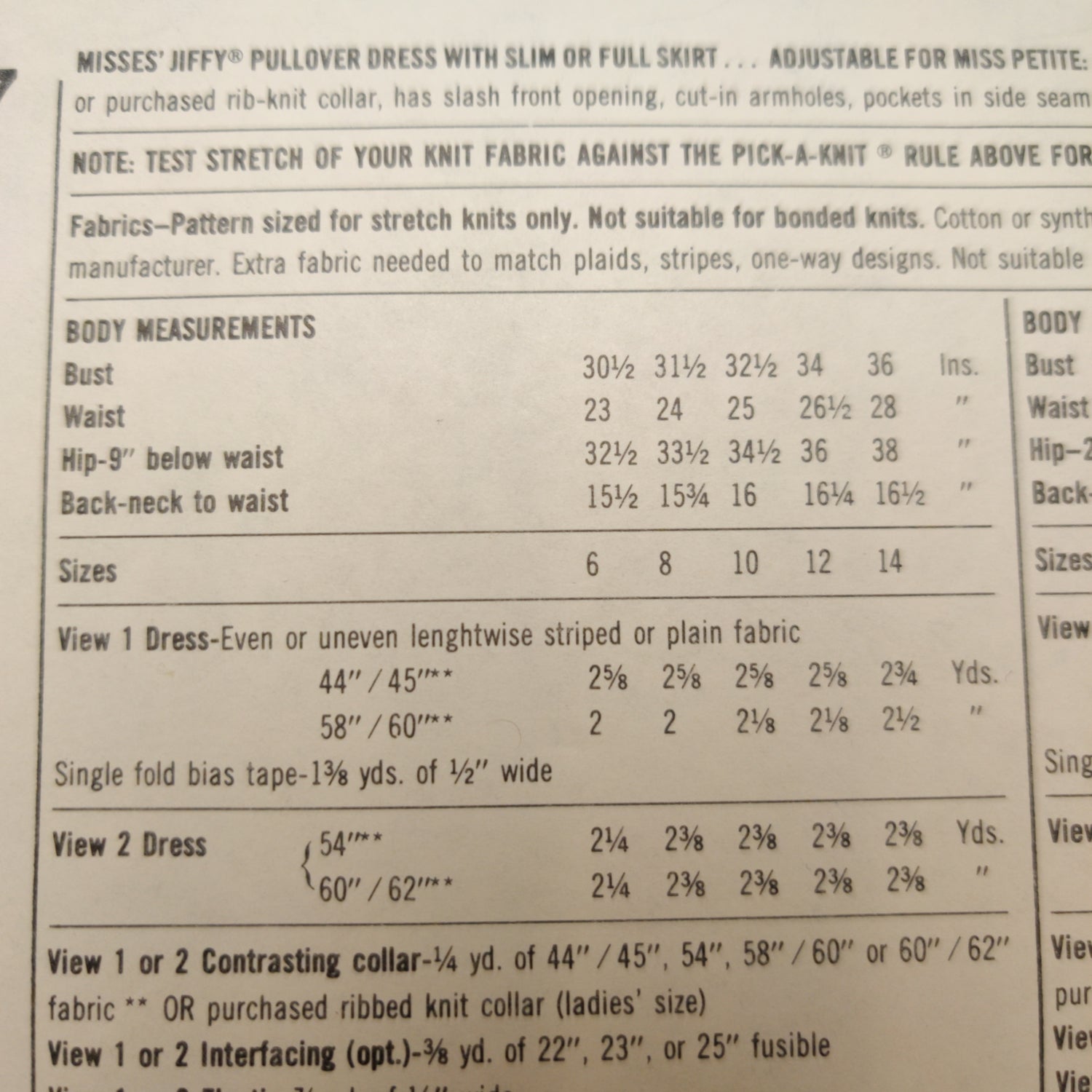 Misses jiffy pullover dress with slim or full skirt.