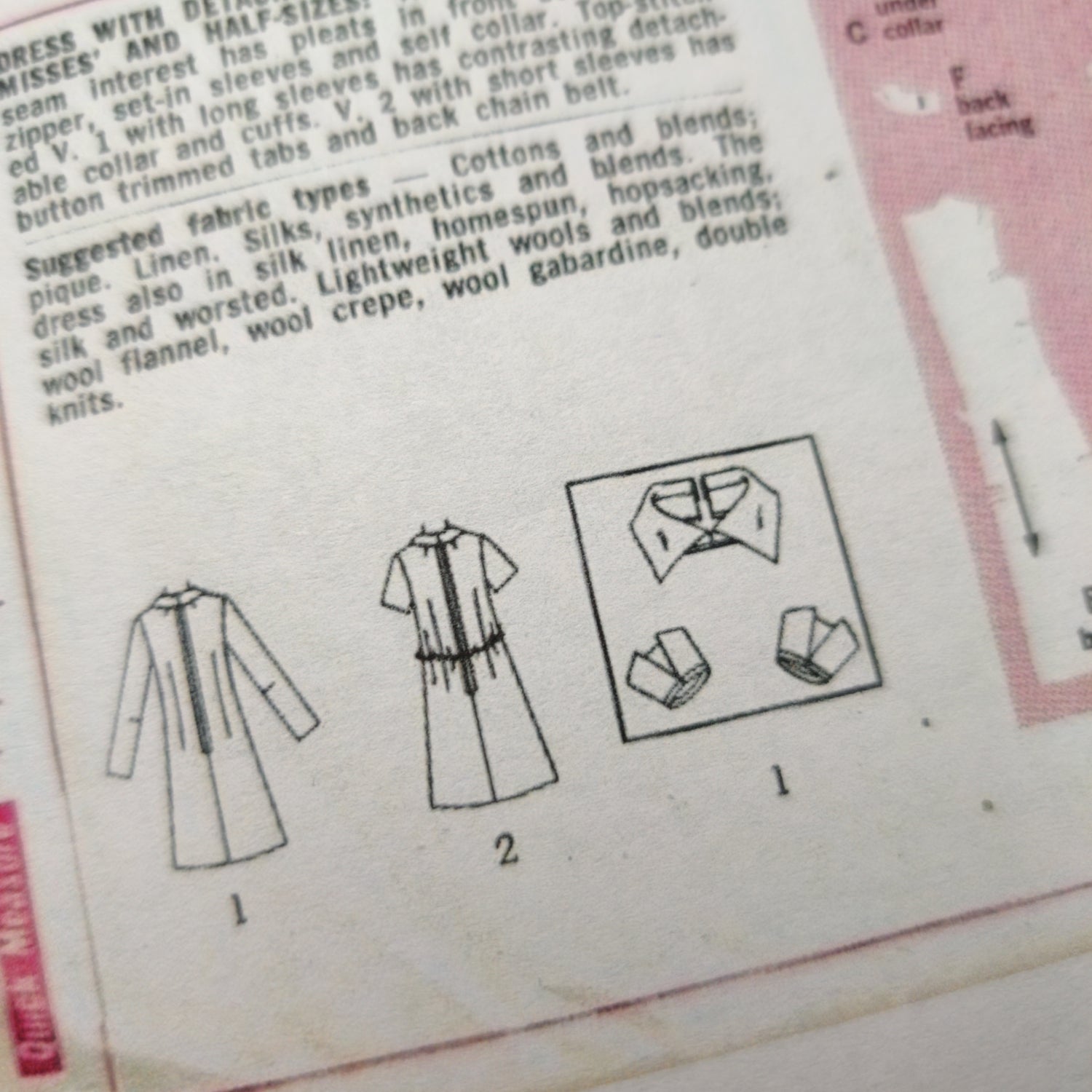 Misses dress with detachable collar and cuffs in Mrs and half sizes. Size 12 Bust 34.