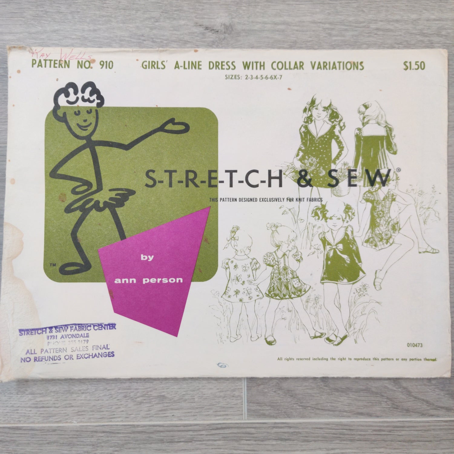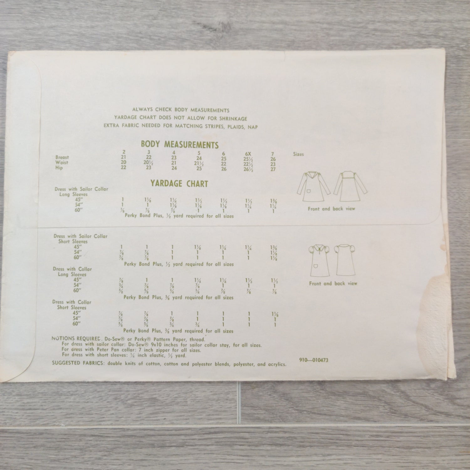 Girls A-line dress with collar variations. Designed exclusively for knit fabrics. Size 2-7