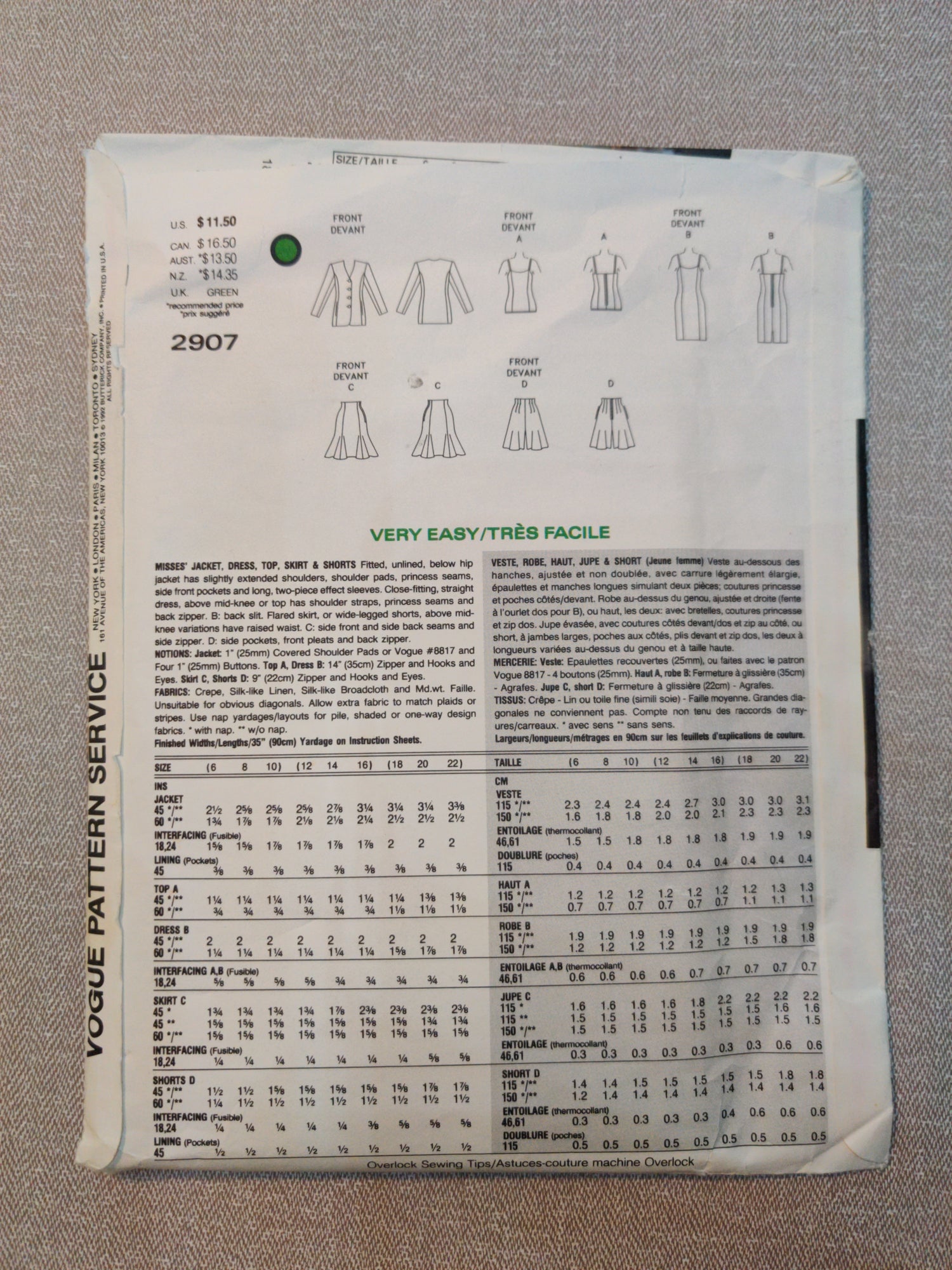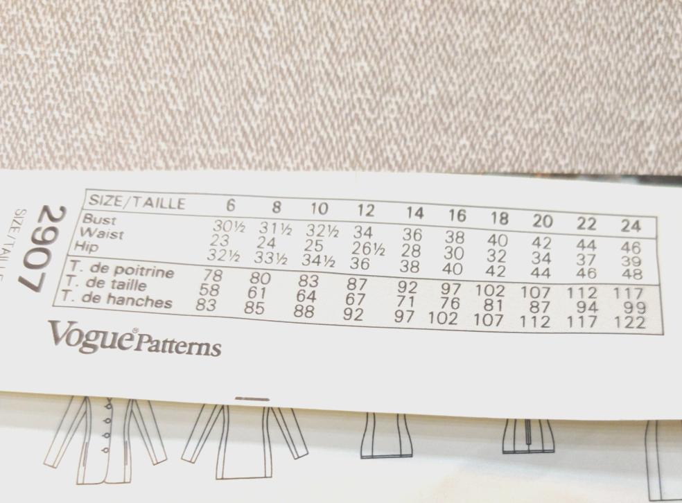 Vogue 2907 size 18-20-22