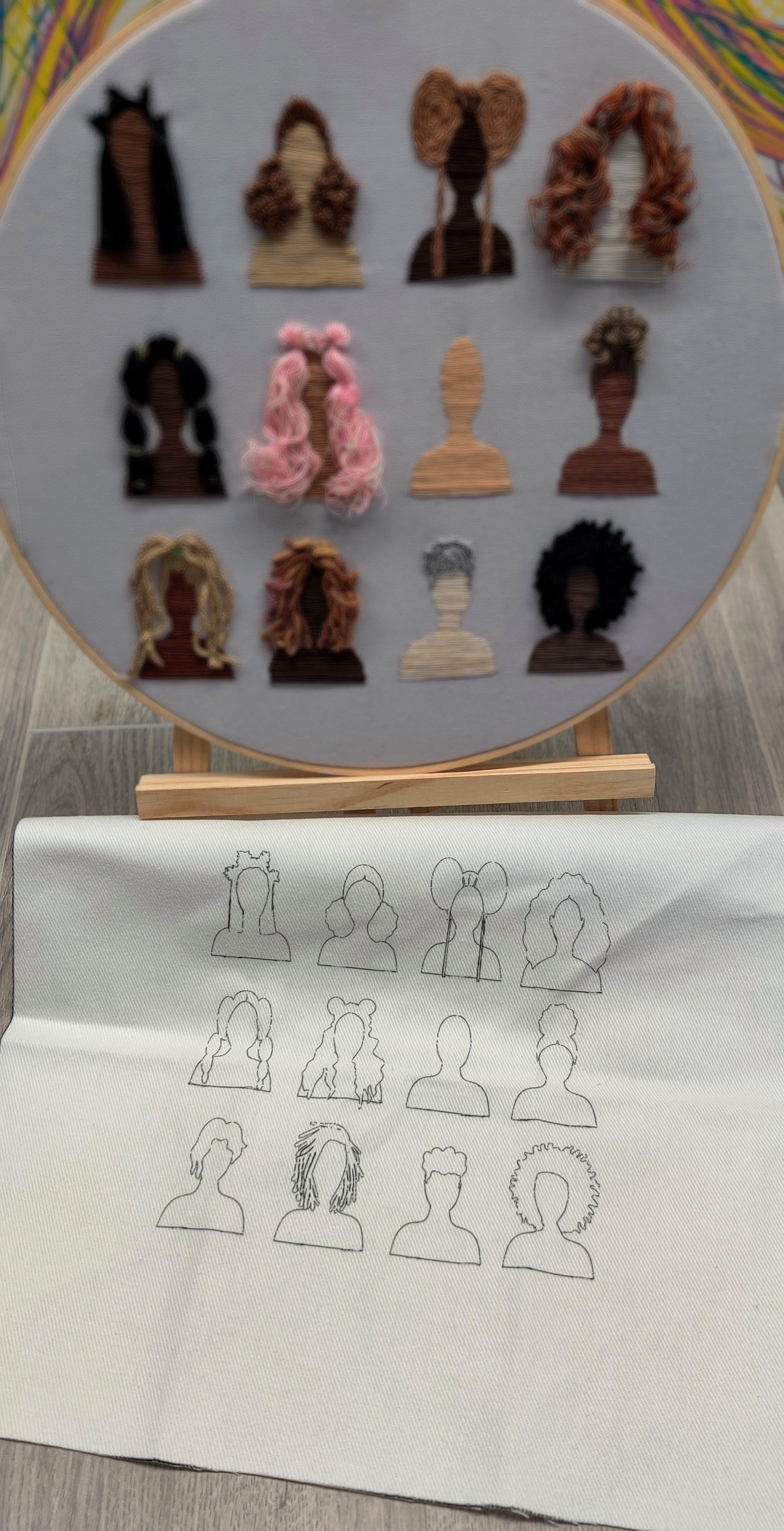 Use the 12 figures to play with texture as you stitch: Braids, Bubble Ponytails, an Afro, Loose curls, a High ponytail, Low Afro puffs, Dreadlocks and Buns.