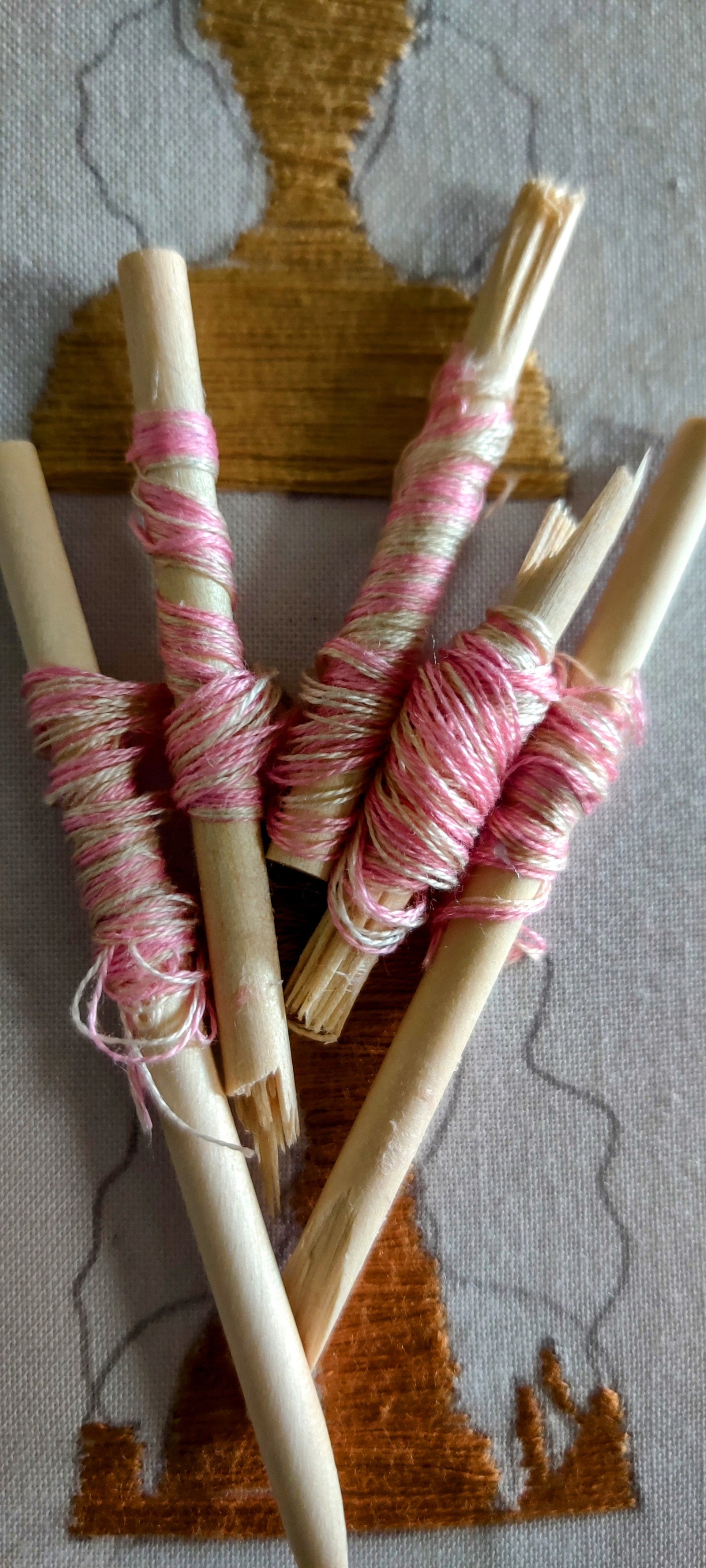 Embroidery Floss, Wood dowel, School glue, Pearl Cotton, Yarn and Crochet Threads of your choice.