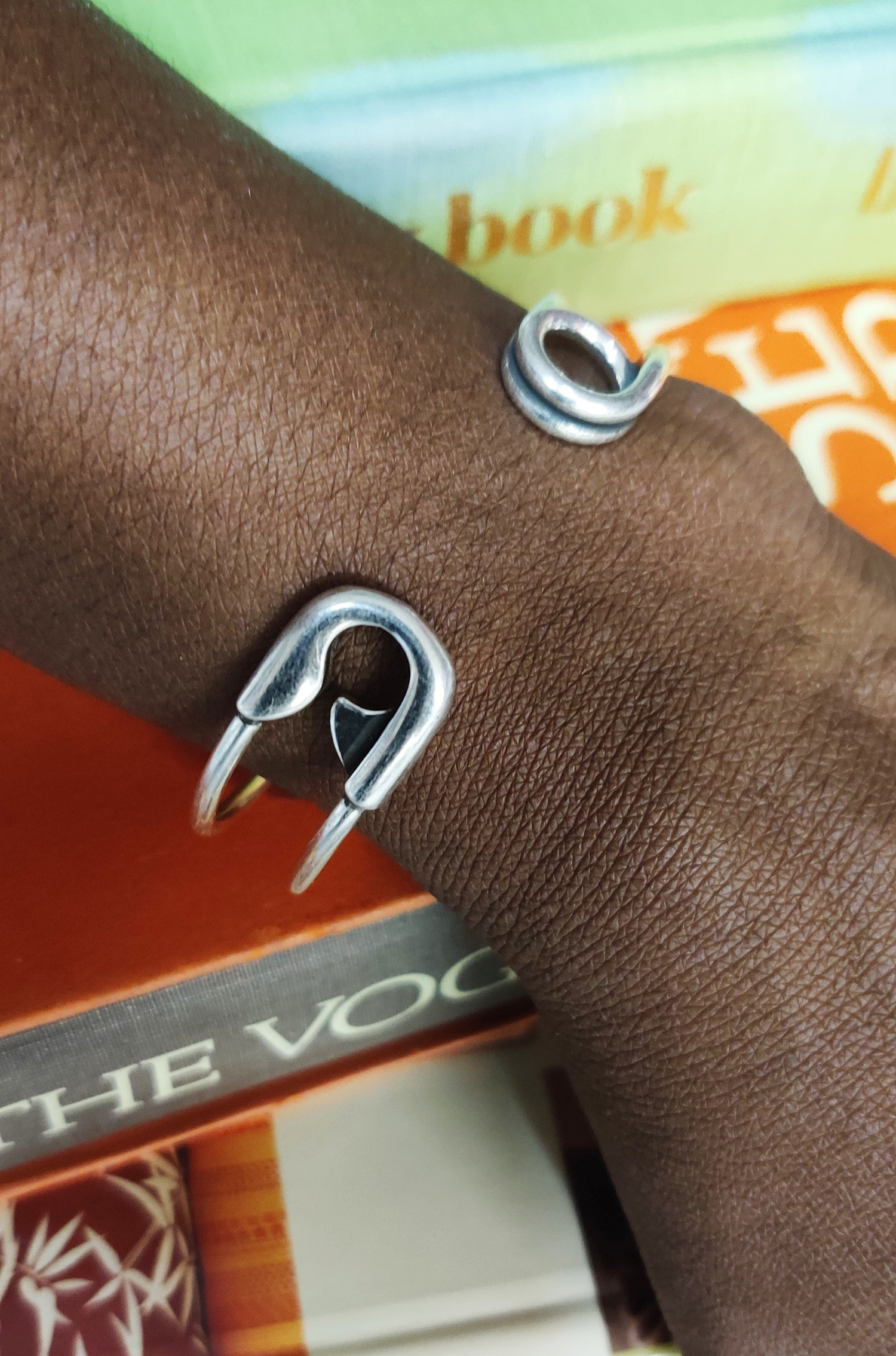Silver Plated Safety Pin Cuff and Link Bracelet