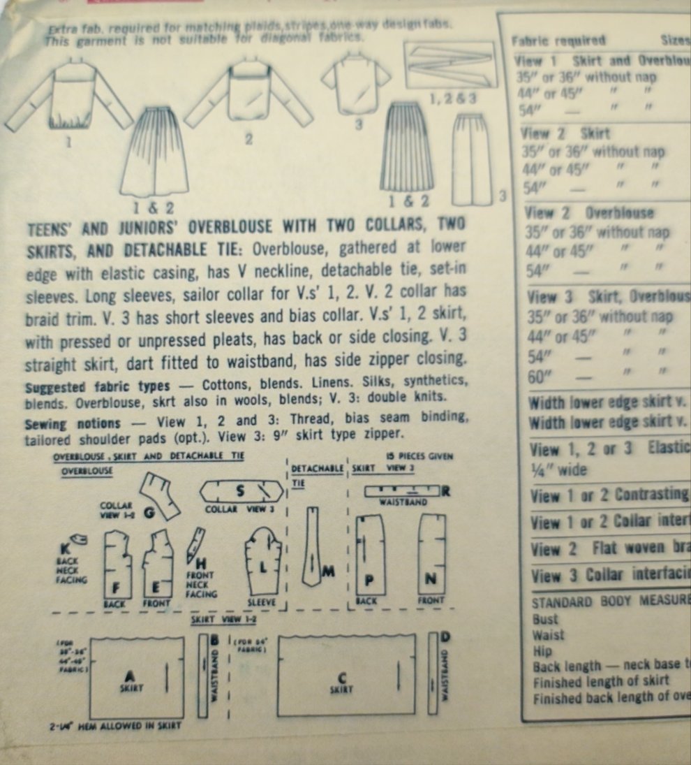Teens and juniors over blouse with two colors two skirts and detachable tie. Size 12 Teen Bust 32.