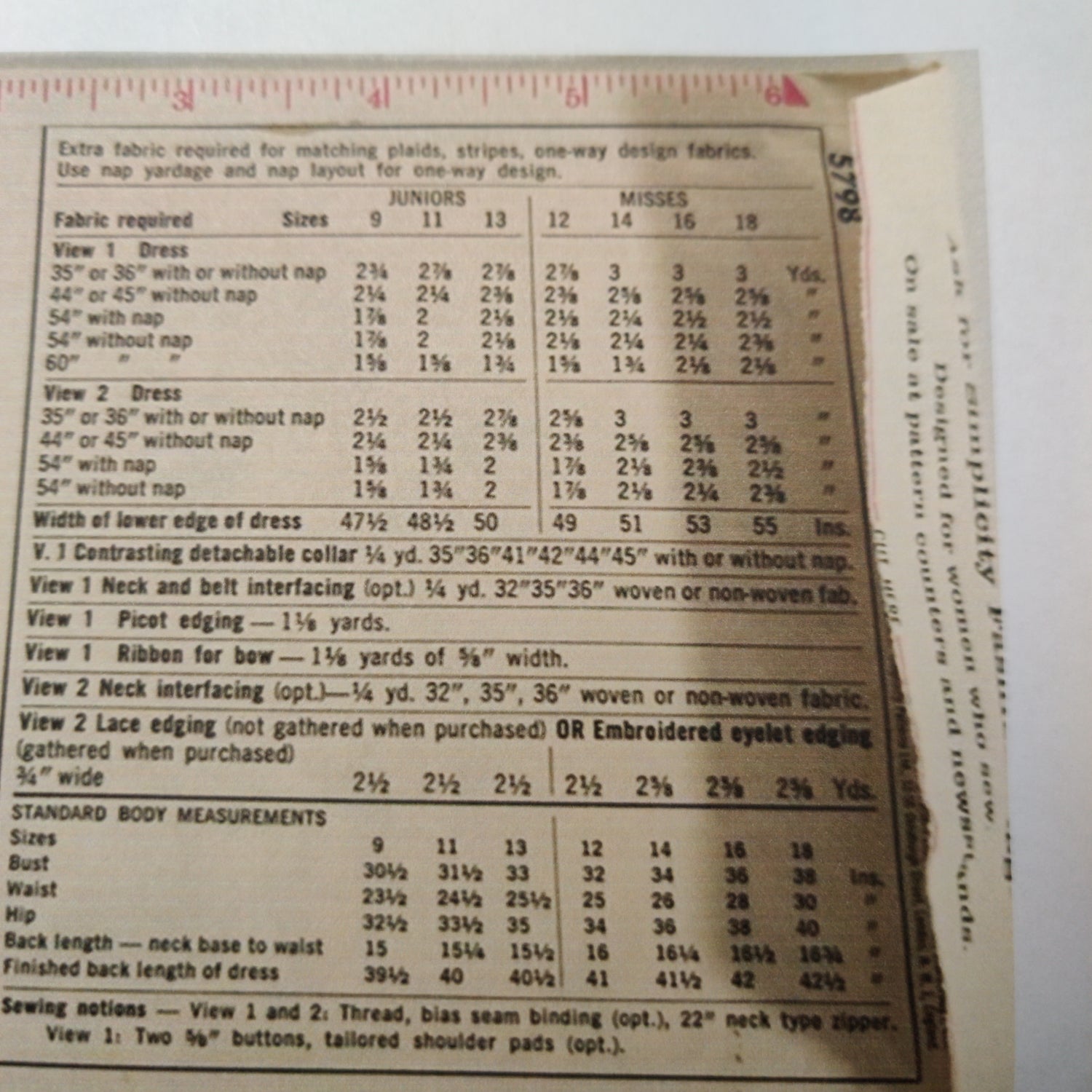 Simplicity 5798 Size 12 Bust 32 Vintage