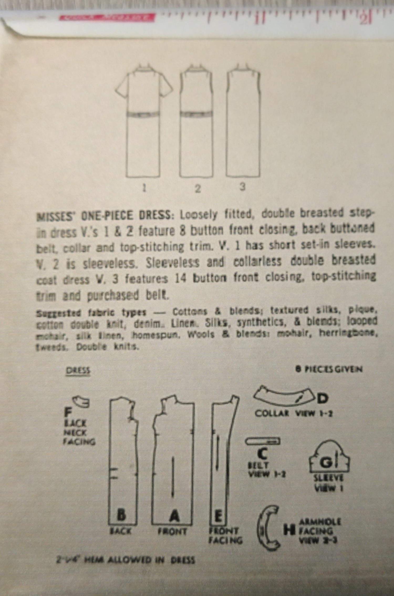 Misses one piece loose-fitting double-breasted dress. Size 12 Bust 32.