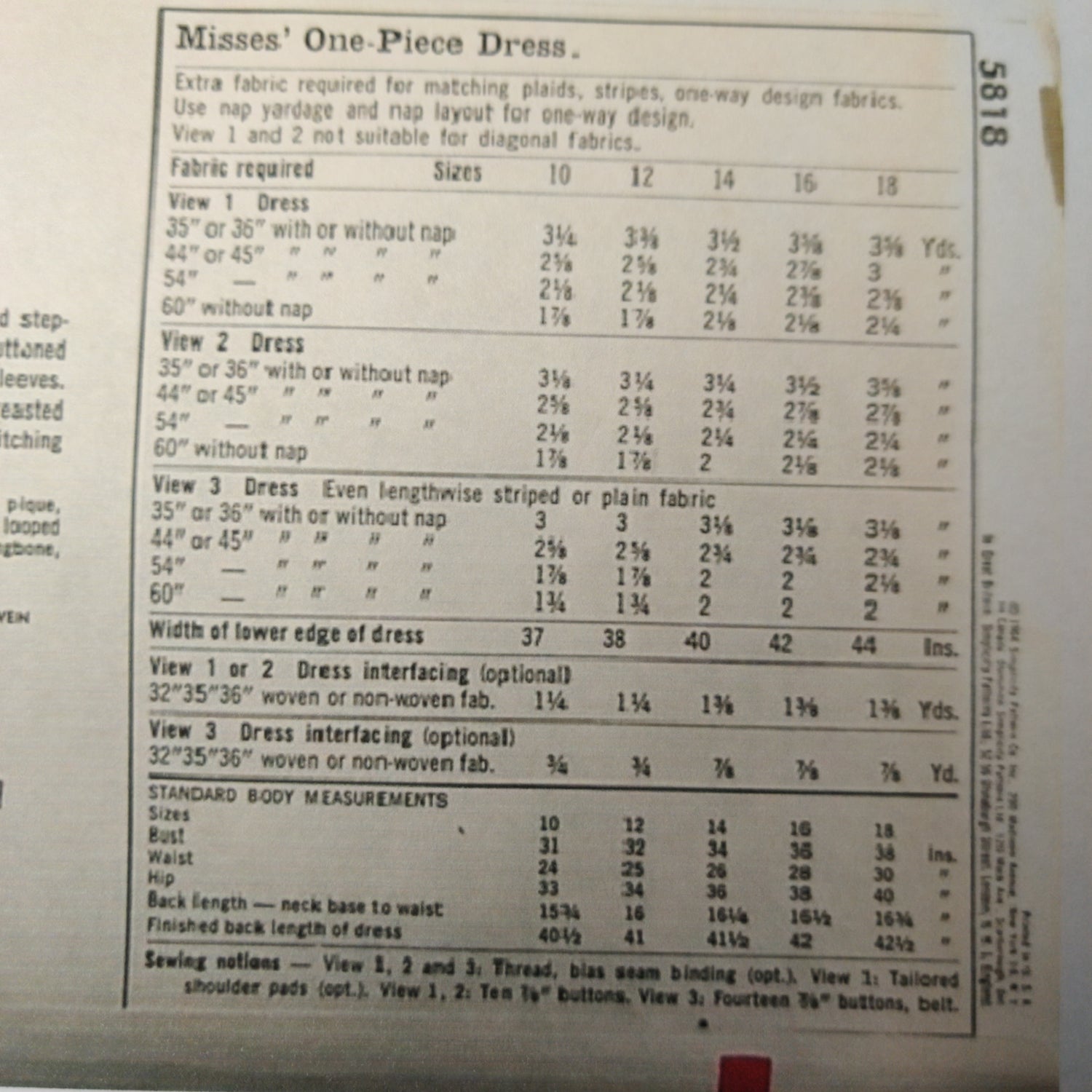 Simplicity 5818 Size 12 Bust 32 Vintage