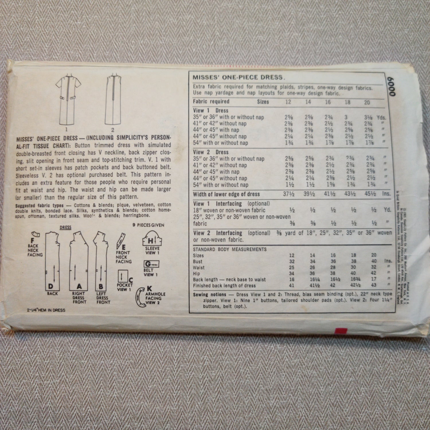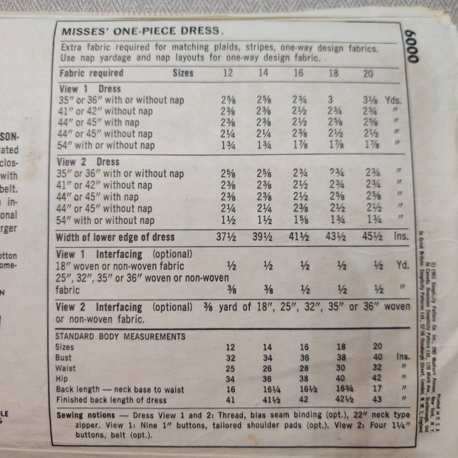 Simplicity 6000 Size 12 Bust 32