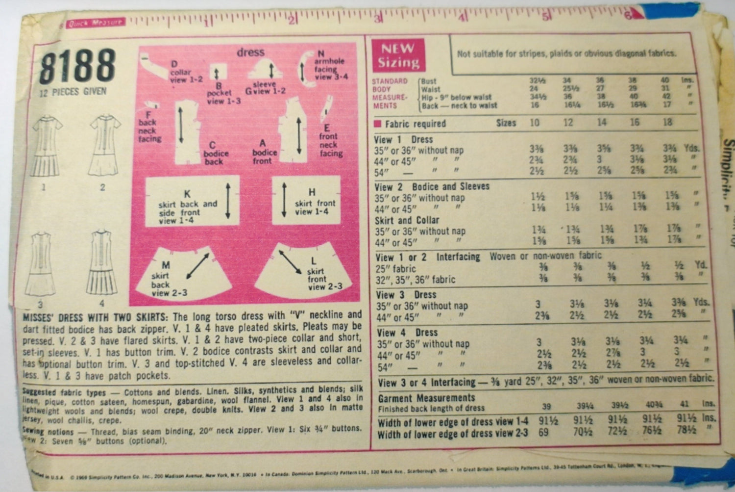 Simplicity 8188 Size 12 Bust 34 Vintage