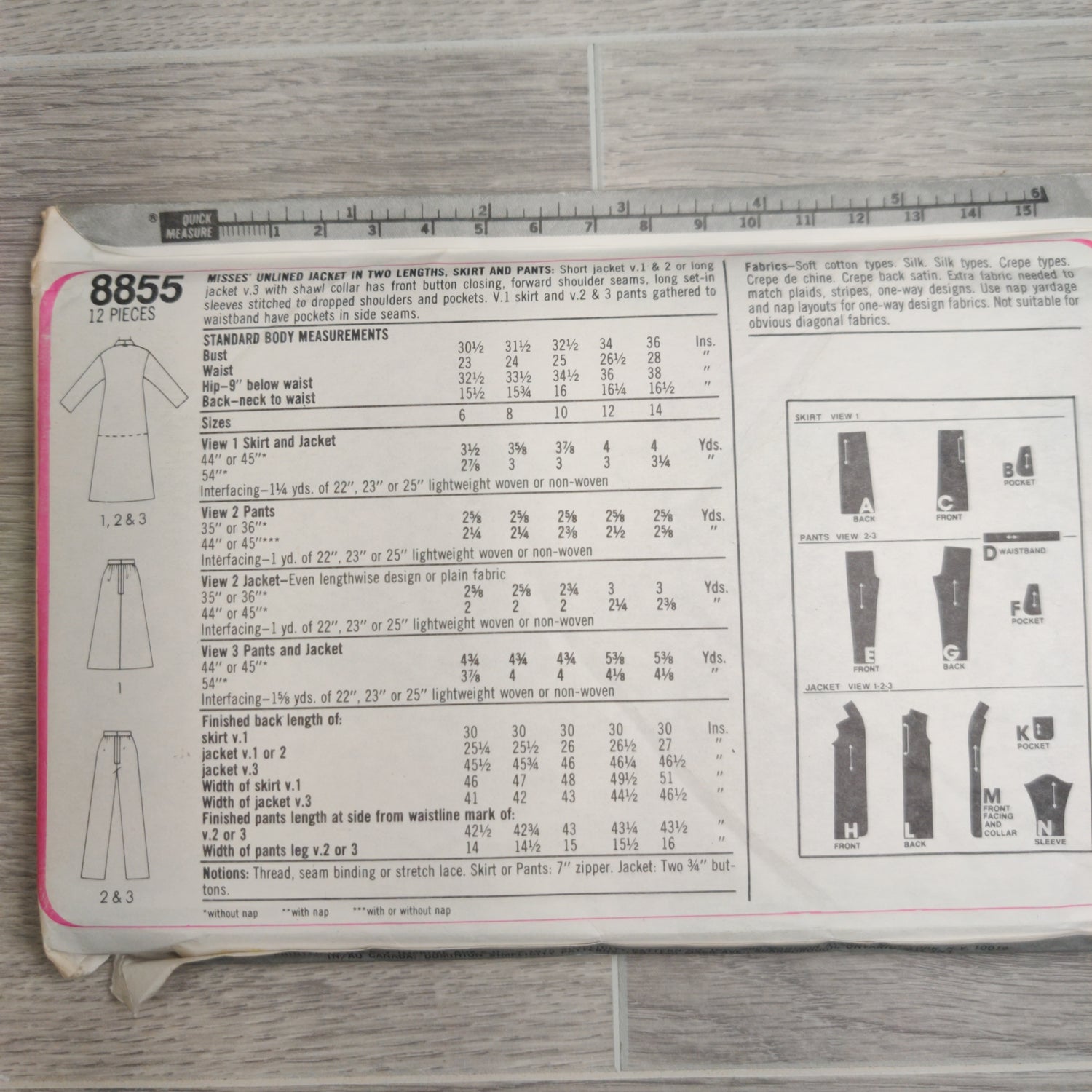 Misses unlined jacket in two lengths, skirts and pants.