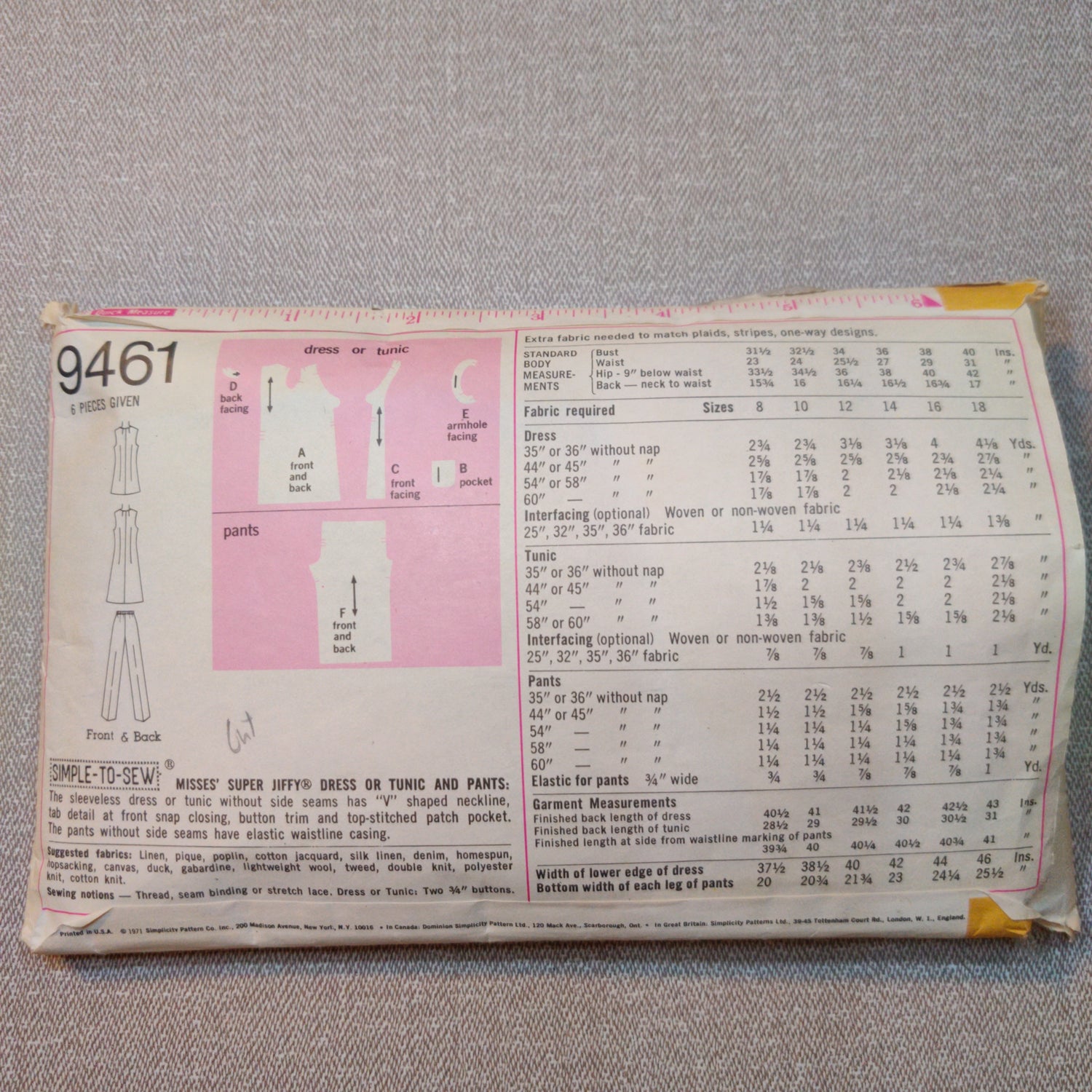 Simplicity 9461 Size 12 Bust 34