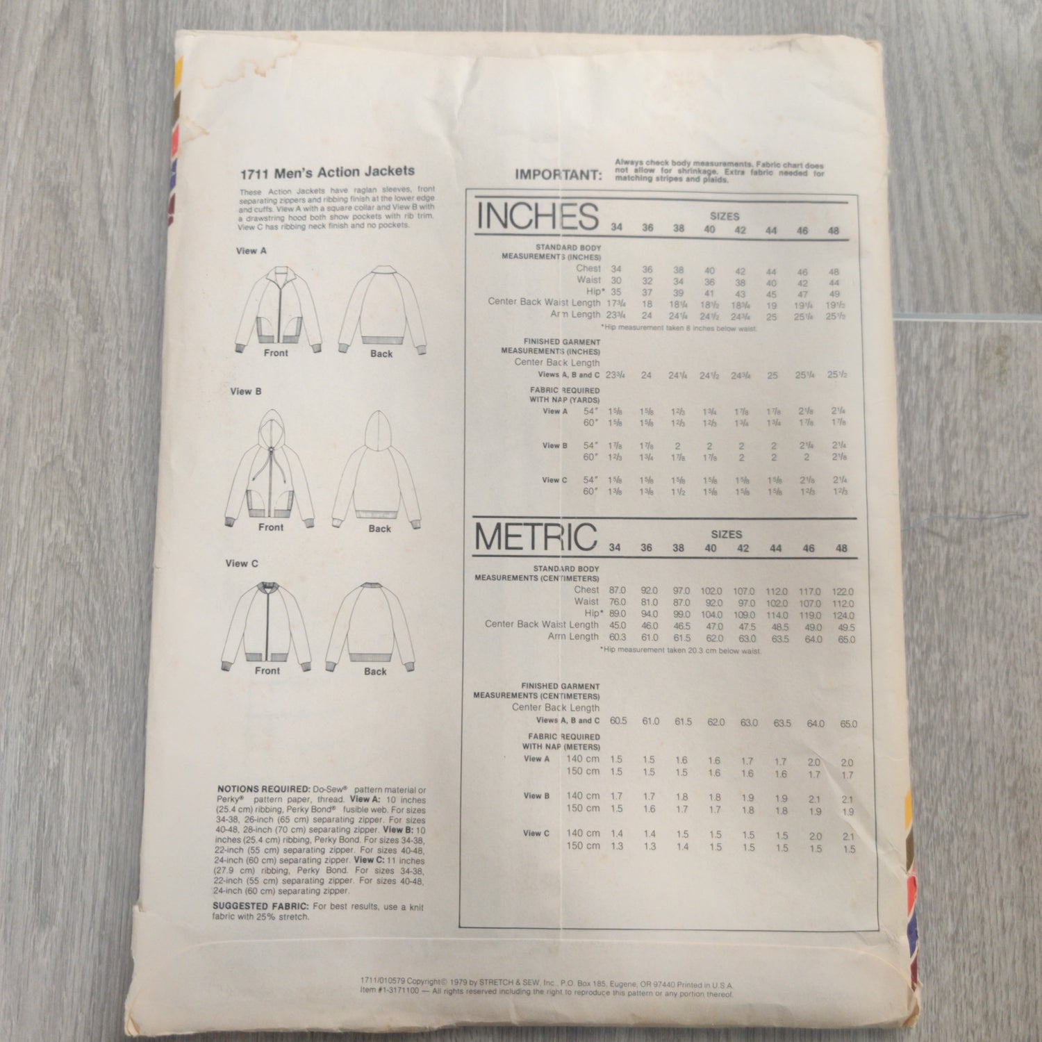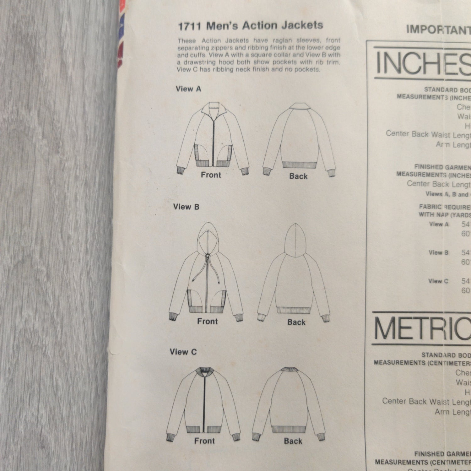 Men's men's action jackets. This pattern designed exclusively for knit fabrics. Sizes 34-48