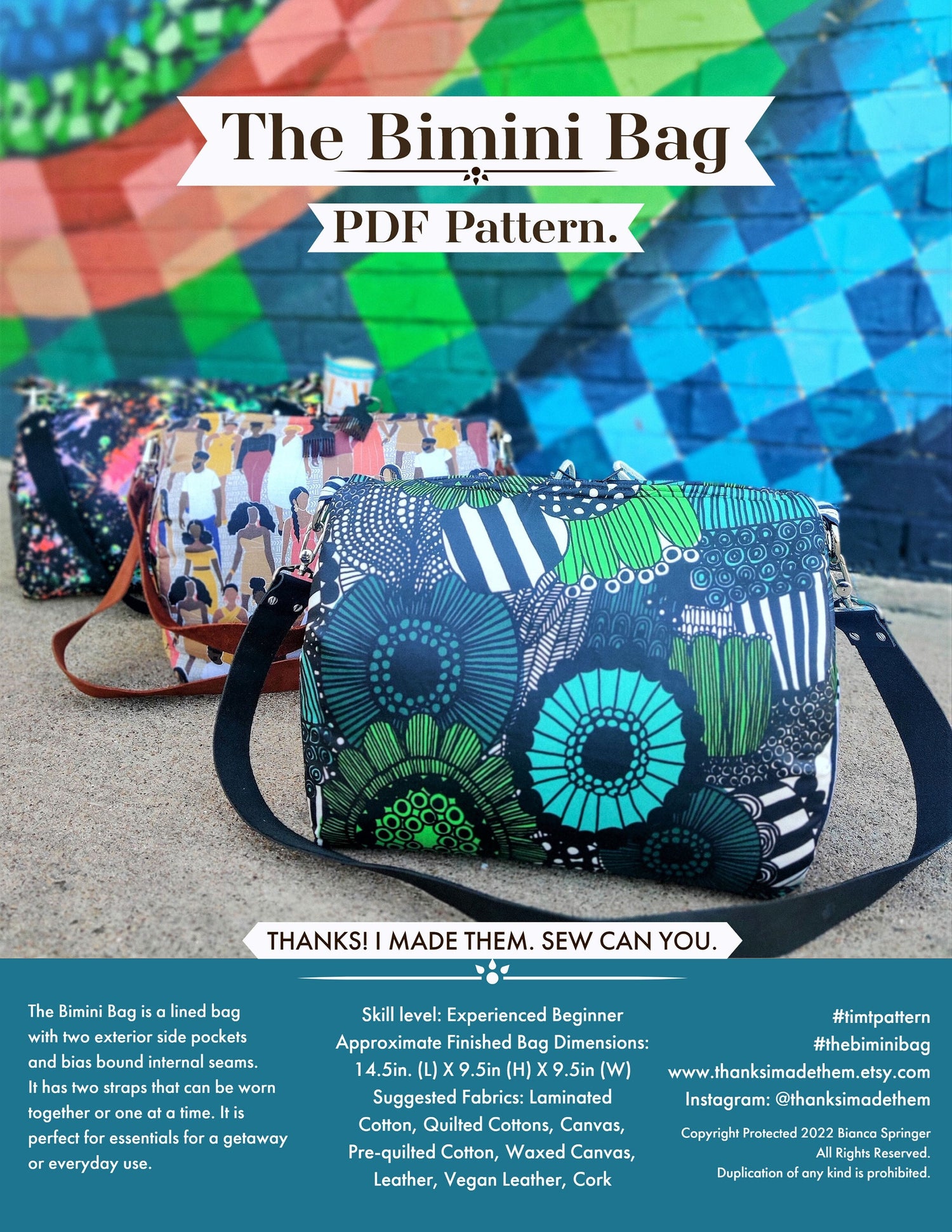 Growing up in The Bahamas, my dream of a weekend getaway usually involved retreating to another Bahamian island. There are over 700 of them, The Biminis are the smallest with inhabitants. in my mind, it was a place to get away to a beach with a good book and zero plans. The Bimini bag is sized for everyday essentials, but perfect to hold what you need for an overnight escape. This skilled beginner bag is fully lined, has bias bound internal seams and two exterior pockets. It has two strap length options that can be worn singly or together.