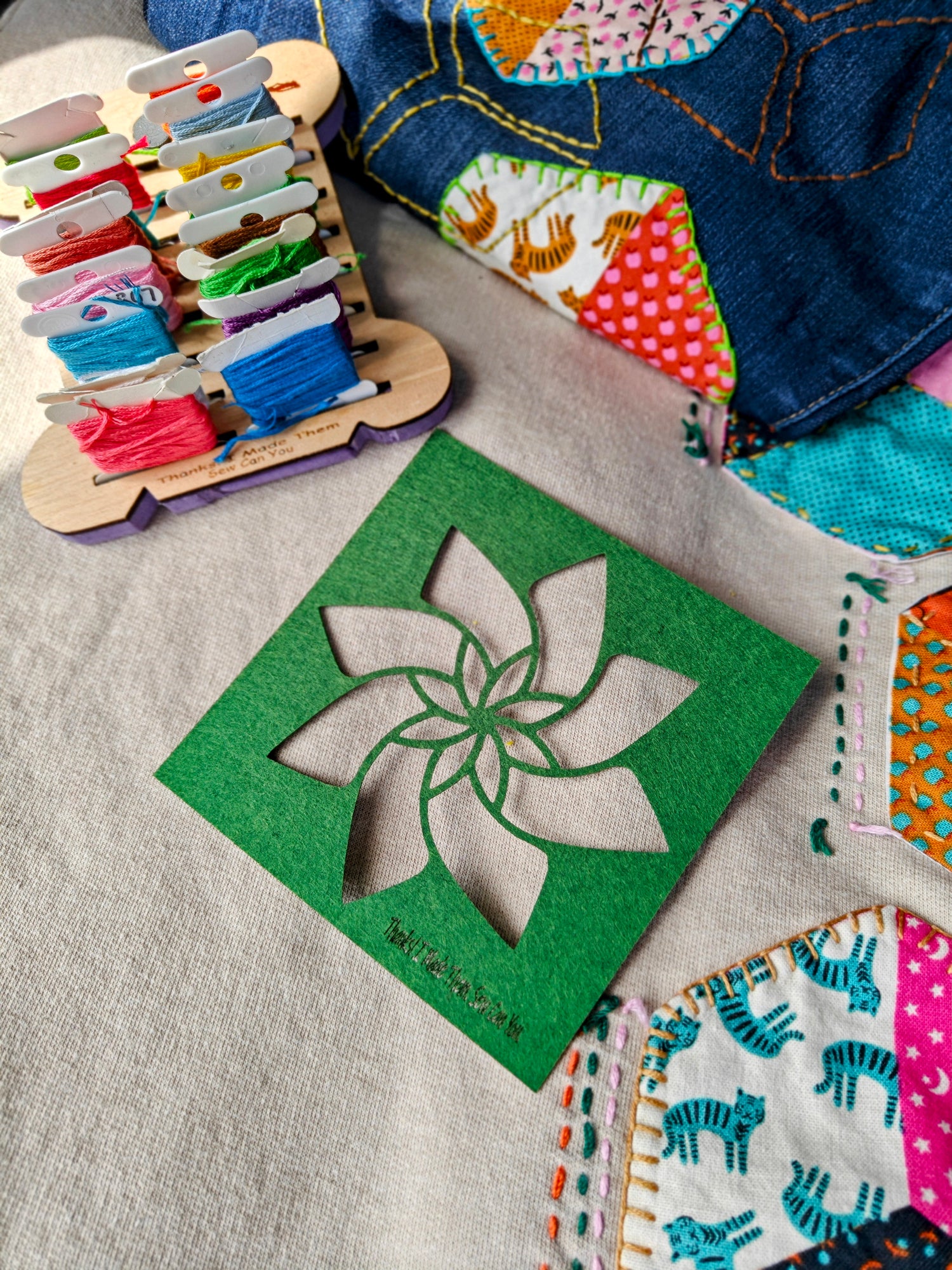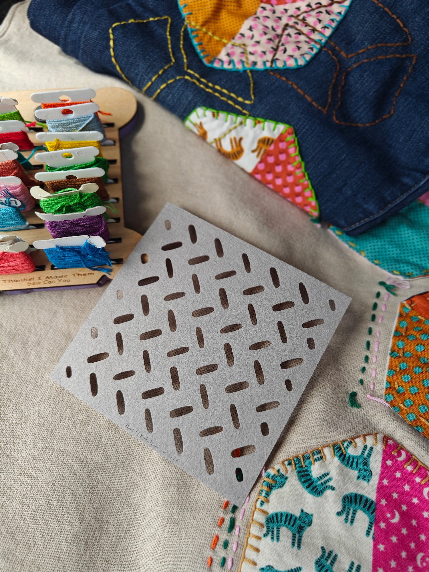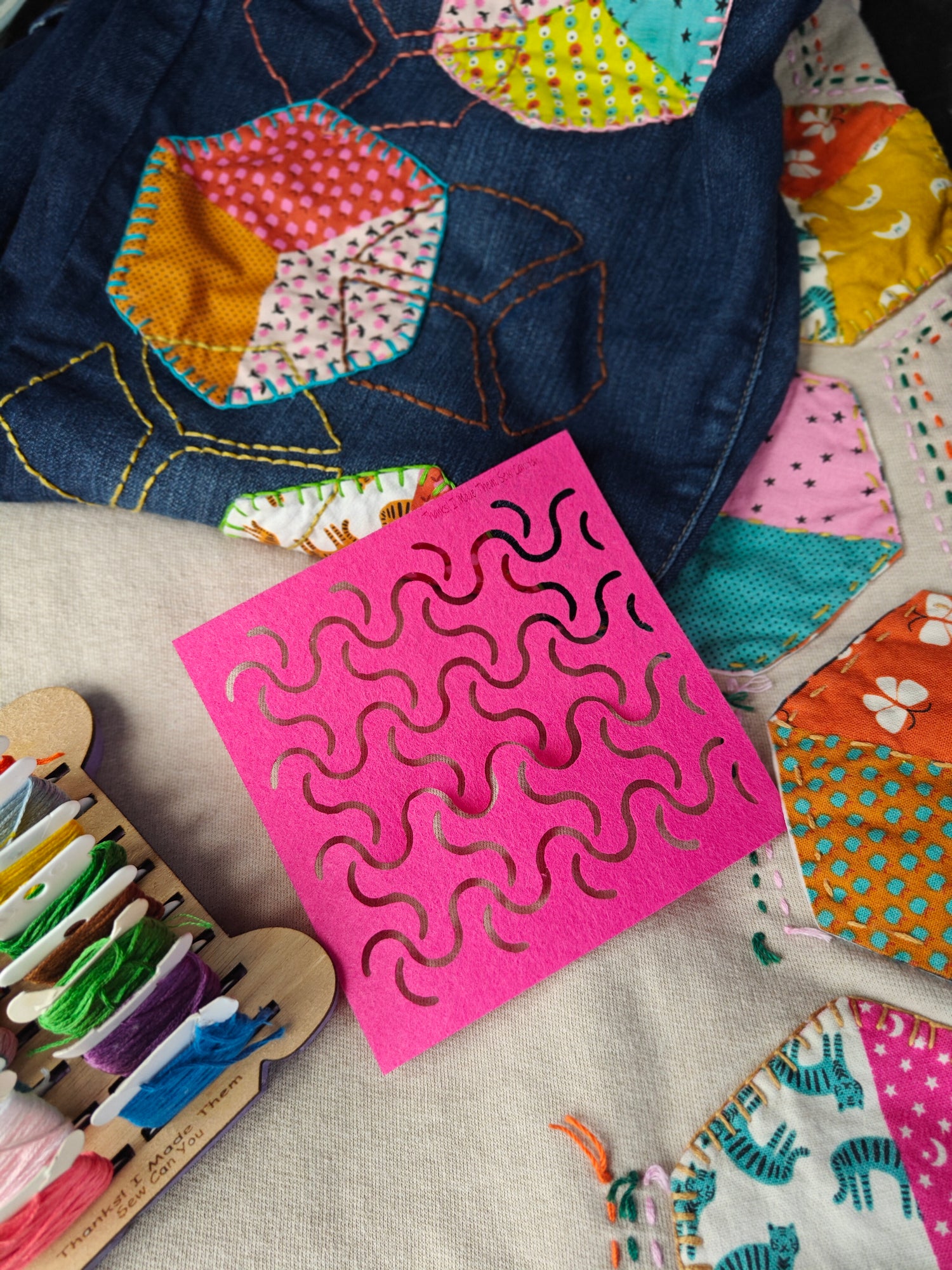 These flexible, reusable 5" felt stencils are designed to help crafters transfer hand embroidery patterns onto fabric with ease and precision. These stencils feature a variety of geometric designs that allow for accurate replication of intricate patterns.