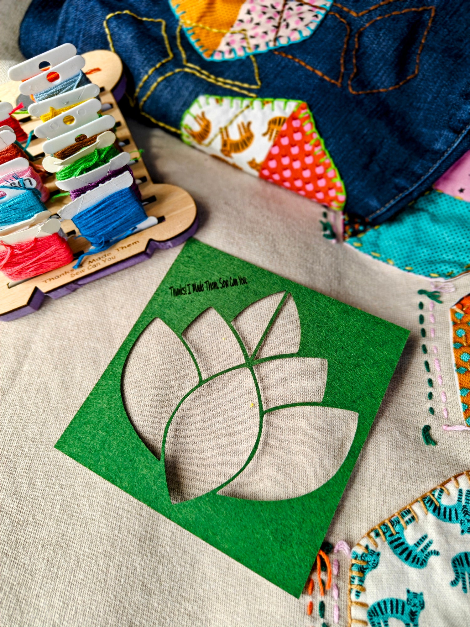 Use a fabric marking pen to trace the stencil's pattern onto their chosen material, then proceed with the stitching to create beautiful, textured designs. The felt stencils are made from durable materials, ensuring they can be used repeatedly for multiple projects.