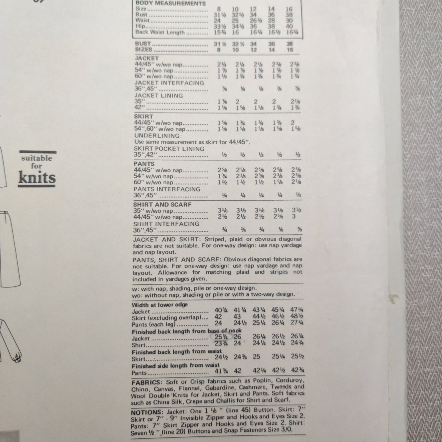 Misses Jacket, Skirt, Pants, Blouse and Scarf