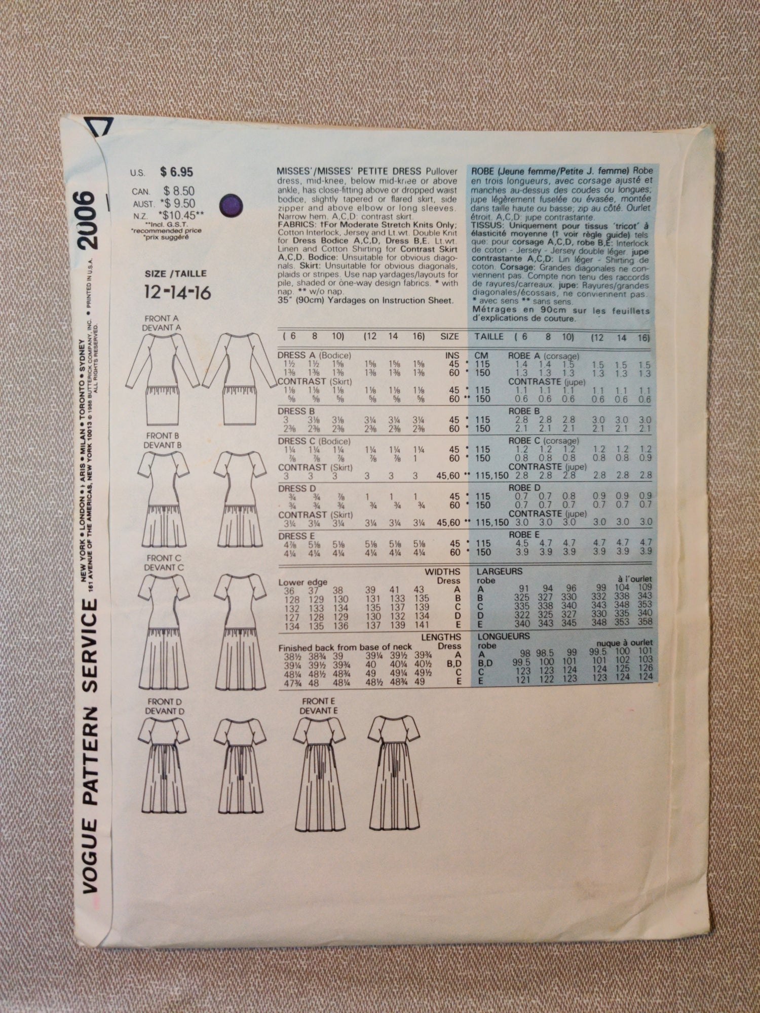 Vogue 2006 Size 12-14-16