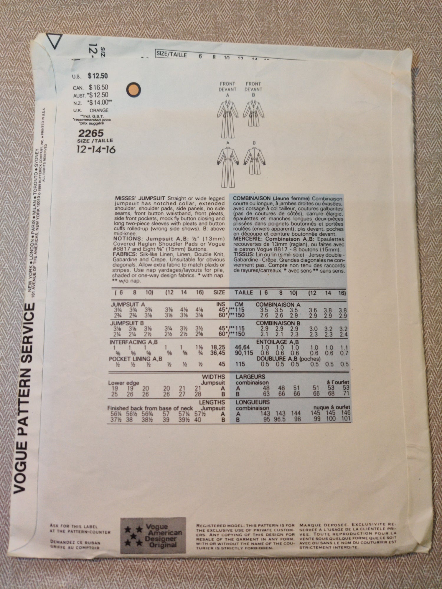 Vogue 2265 Size 12-14-16 Calvin Klein
